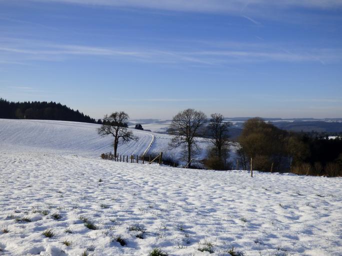 Keywords: snow winter landscape cold freeze january vista trees nature luxembourg blue sky white