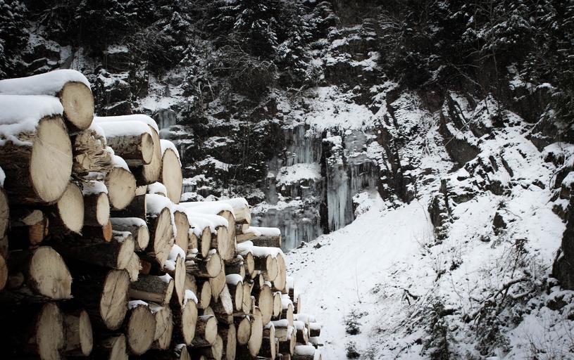 Keywords: snow wood winter nature cold snowy tree trunks wintry