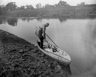 Keywords: Snowden Slights placing gun in punt YORYM-S3.jpg Slights placing a punt gun in a punt He is wearing a loose country jacket and hat depicted people Snowden Slights depicted place 1900-1912 glass plate negative 125mm long edge x 100mm short edge institution Yorkshire Museum object history exhibition history credit line accession number YORYM S3 Images from the Sydney Harold Smith Photographic Archive held by York Museums Trust <br> York Museums Trust image PD-old-70-1923 PD-US Uploaded with UploadWizard Images from The Sydney Harold Smith Collection Waterfowl hunting Punts Snowden Slights |