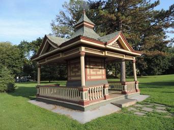 | Keywords: Snug Harbor gazebo NW.jpg en Looking southeast at gazebo late on a mostly sunny afternoon 2014-08-16 18 09 06 own Jim henderson 40 38 35 7 N 74 6 11 4 W heading SE cc-zero Uploaded with UploadWizard Gazebos in the United States Built in New York City in 1886 Sailors' Snug Harbor |