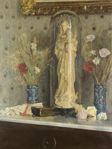 Keywords: Sobre la consola - Francesc Fontanals i Rovirosa - 948.jpg Artwork Creator Francesc Fontanals i Roviros Pintura del detall d'una llar que mostra una mena d'altar domèstic o consola devocional Representa una marededéu de marbre o ceràmica ficada en una urna de vida i a cada banda gerros amb flors Sobre el marbre del moble i donant un caire anecdòtic a la representació hi ha uns guants de ras i una bossa de mà between Oil on canvas cm Institution Biblioteca Museu Víctor Balaguer object history exhibition history credit line accession number 948 place of creation Biblioteca Museu Víctor Balaguer-cooperation PD-Art PD-old-100-1923 Uploaded with UploadWizard Paintings in the Biblioteca Museu Víctor Balaguer 19th-century paintings Christianity in Catalonia Wayside shrines Modern art in Catalonia |