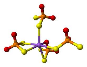 Keywords: Sodium-dithiophosphate-xtal-Na(1)-coordination-3D-balls.png Ball-and-stick model of the coordination of the sodium ion Na 1 in the crystal structure of sodium dithiophosphate Na<sub>3</sub>PO<sub>2</sub>S<sub>2</sub> X-ray crystallographic data from http //dx doi org/10 1016/j solidstatesciences 2003 07 002 Solid State Sciences 2003 5 1439-1444 Model constructed in http //www crystalmaker com/ CrystalMaker 8 1 Image generated in http //accelrys com/products/discovery-studio/visualization/discovery-studio-visualizer html Accelrys DS Visualizer Own 2009-03-26 Ben Mills Benjah-bmm27 Images by Ben Mills Sodium dithiophosphate |