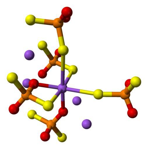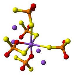 Keywords: Sodium-dithiophosphate-xtal-Na(3)-coordination-3D-balls.png Ball-and-stick model of the coordination of the sodium ion Na 3 in the crystal structure of sodium dithiophosphate Na<sub>3</sub>PO<sub>2</sub>S<sub>2</sub> X-ray crystallographic data from http //dx doi org/10 1016/j solidstatesciences 2003 07 002 Solid State Sciences 2003 5 1439-1444 Model constructed in http //www crystalmaker com/ CrystalMaker 8 1 Image generated in http //accelrys com/products/discovery-studio/visualization/discovery-studio-visualizer html Accelrys DS Visualizer Own 2009-03-26 Ben Mills Benjah-bmm27 Images by Ben Mills Sodium dithiophosphate |