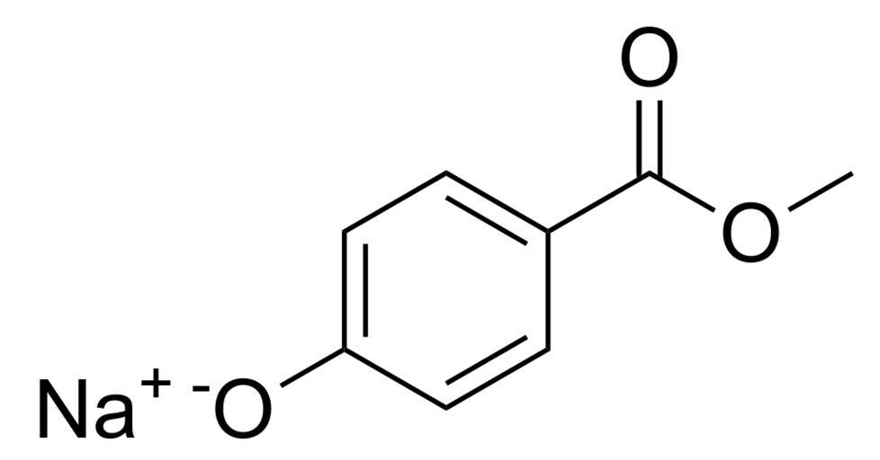 | Keywords: Sodium methyl para-hydroxybenzoate.svg Chemical structure of Sodium methyl para-hydroxybenzoate Sodium methyl p-hydroxybenzoate; methylparaben sodium salt Own 12 50 20 April 2011 UTC Ed Edgar181 Parabens Sodium salts of organic compounds Methyl esters |