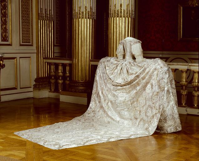 Keywords: Sofia Magdalenas bilägersdräkt - Livrustkammaren - 55918.tif LSH artwork Johan Adam Ströwer livskräddare sv Tyget till bröllopsklänningen är troligen beställt från Frankrike Bröllopsklänningen är en sk robe de cour sydd efter rådande franskt mode Den ingick i Sofia Magdalenas trousseau och den lämnades in till Klädkammaren 1766 <br/>Dräktens ursprung har länge varit okänt men man har kunnat finna avgörande dokmument för att fastställa att dräkten är sydd i Köpenhamn av prinsessans danska hovskräddare Johan Adam Ströwer med tyg inköpt i Hamburg <br/>Smalt styvat liv med smal betonad midja Av silverbrokad med ett mönster i silver och vitt föreställande små girlander blommor och blad Livet har en utdragen spets mitt fram på sidorna runtom är skuret tolv små rundade flikar 70 mm höga bildandes ett skört Ovanför skörten löper ett silversnöre <br/>Klänningen har en rund vid ringning kantad av vit spets 50 mm bred av silkestyll som sammandragits med några stygn mitt fram <br/>Livet har ca 37 mm breda axelpartier kantade av en 10 mm bred silverspets av silvertråd och smala silverlan Ärmarna är löstagbara av flera lager av en tunn mönstrad gasväv kallade engageantes <br/>Sidsömmarna täcks av en 15 mm bred spets av silvertråd och smala silverlan <br/>Livet snöras ihop mitt bak av 13 snörhål på vardera sida Silvertyget har vikts upp på vardera sida om knäppningen som bredast upptill 80 mm <br/>Livet är på insidan fodrat med vit sidenrips sytt i smala kanaler för styvnaderna av valben Vid ringningen är silvertyget omvikt så att det bildar en 10 mm bred fåll på insidan original caption Sofia Magdalenas bilägersdräkt - LRK 25915 Gustav III och Sofia Magdalenas bröllop 1766 brocade Färg silver d1 - dräkt - yttermaterial material silverbrokad - tulle Färg vit dekor material tyll - silk Färg vit d2 - dräkt - foder material sidenrips - silver Färg silver dekor material silverlan size mm 365 mitt fram size mm 615 bröst LRK Sofia Magdalena av Sverige Brudklänningar 1986-1987 Fest och fritid vid hovet 2003 Dronningens Kjole 2004 Det elegante liv arb namn 2007 Bröllop för kung och fosterland 2010-2011 Livrustkammaren Gustav III place of origin Köpenhamn original filename lm_t03903 62593 inventory number LRK 25915 55918 CC-BY-SA <gallery caption Different images of same object > File Sofia Magdalenas bröllopsklänning - Livrustkammaren - 82363 tif File Liv insidan Brudklänning - Livrustkammaren - 39563 tif File Sofia Magdalenas bröllopsklänning Bild bakifrån med fullständigt släp - Livrustkammaren - 13878 tif File Sofia Magdalenas bröllopsklänning liv - Livrustkammaren - 22441 tif File Sofia Magdalenas bröllopsklänning liv - Livrustkammaren - 5317 tif File Bröllopsklänning Sofia Magdalena - Livrustkammaren - 39562 tif File Sofia Magdalenas bröllopsklänning bakifrån - Livrustkammaren - 73804 tif File Detalj Sofia Magdalenas bilägersdräkt - Livrustkammaren - 81600 tif </gallery> Court dress of Sweden Media contributed by LSH dim-with multiple size templates Media contributed by LSH unmatched creator Wedding dress of Sofia Magdalena of Denmark Media contributed by LSH 2014-11 |