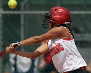 Keywords: softball batter girl game competition teen ball female teenager uniform bat hitter athlete player infield sport hit action helmet swing batting swinging home plate hitting play athletic