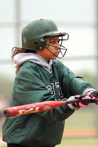 Keywords: softball girls batter hitter game sport female player play bat competition athletic teenager person teen uniform youth fastpitch athlete cute swinging swing helmet green cold jacket playing