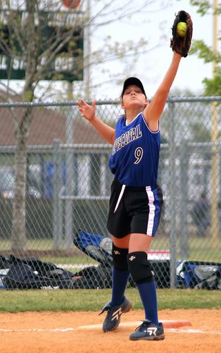 Keywords: softball girls softball first base catch teenager girl sport athletic infielder action infield fence player game softball player
