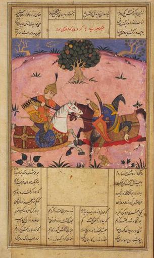 Keywords: Sohrab fights Gordafarid.jpg en Sohrab fights Gurdafarid fa سهراب در حال نبرد با گردآفرید Old Shahnama Manuscript Author pd-old PD-Art Shahnameh Persian miniatures Gordafarid Sohrab Fighting in art