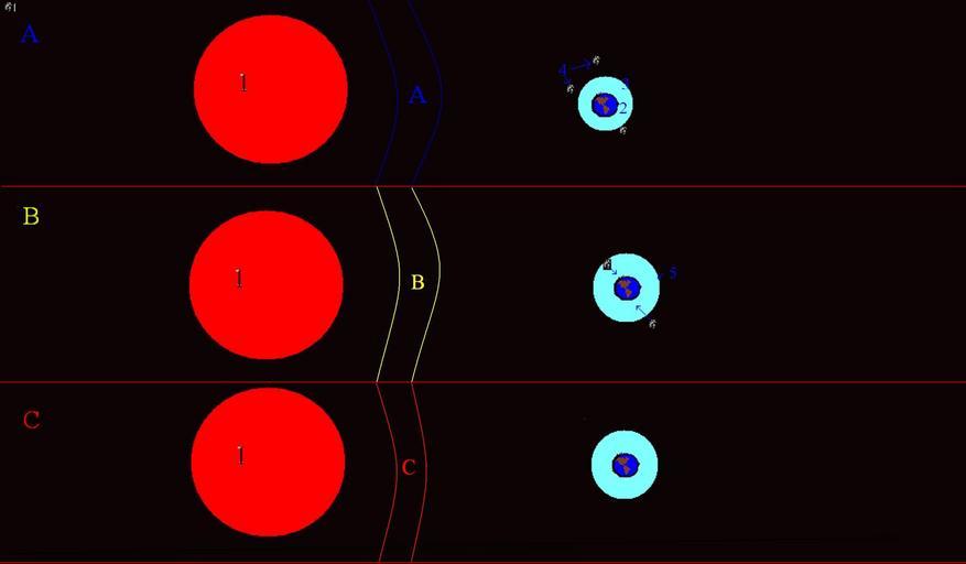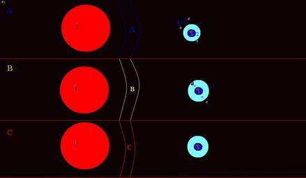 Keywords: Solar storm.JPG Fases de una tormenta solar siendo A Erupción Solar interrumpe las comunicaciones y agranda la atmósfera haciendo que los satélites mas cercanos caigan a tierra B Tormenta de Radiación afecta a personas fuera de la Tierra que no esten protegids contra el viento solar C CME en inglés Coronal Mass Ejection;en español Eyección de Masa Coronal plasma solar que puede quemar los transformadores con carga eléctrica y artefactos en el espacio con electricidad El gran Telescopio Hubble terminaría frito si fuera impactado por una CME El Sol es 1 la Tierra es 2 la atmósfera es 3 los satélites son 4 y la atmósfera despues de la erupción solar es 5 Esta imágen ha sido creada en Paint con el nombre de Solar_storm y formato JPG basada en datos sobre las etapas de una tormenta solar 2007-02-14 own assumed Marco94 Solar activity |