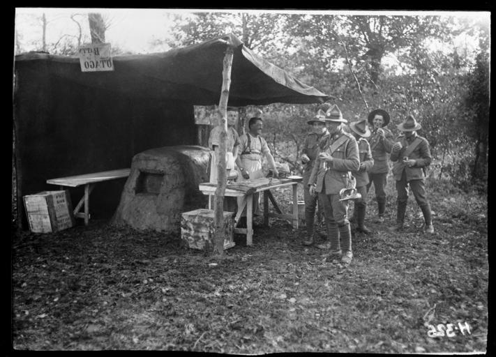 | Keywords: the great war thegreatwar great war greatwar world war one worldwarone world war i worldwari wwi first world war firstworldwar new zealand expeditionary force newzealandexpeditionaryforce nzef soldier soldiers field kitchen fieldkitchen sausage roll sausageroll blackandwhite monochrome outdoor black and white New Zealand soldiers of the Otago Battalion eating sausage rolls. Taken in Selle, France in 1917 by Henry Armytage Sanders. Inscriptions: Inscribed - Photographer's title on negative -bottom right: H326. Quantity: 1 b&w original negative(s). Physical Description: Dry plate glass negative 4.75 x 6.5 inches Soldiers eating sausage rolls, Selle, France. Royal New Zealand Returned and Services' Association :New Zealand official negatives, World War 1914-1918. Ref: 1/2-012967-G. Alexander Turnbull Library, Wellington, New Zealand. natlib.govt.nz/records/22788236 New Zealand soldiers of the Otago Battalion eating sausage rolls. Taken in Selle, France in 1917 by Henry Armytage Sanders. Inscriptions: Inscribed - Photographer's title on negative -bottom right: H326. Quantity: 1 b&w original negative(s). Physical Description: Dry plate glass negative 4.75 x 6.5 inches Soldiers eating sausage rolls, Selle, France. Royal New Zealand Returned and Services' Association :New Zealand official negatives, World War 1914-1918. Ref: 1/2-012967-G. Alexander Turnbull Library, Wellington, New Zealand. natlib.govt.nz/records/22788236 |