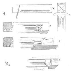Keywords: Solives.medievales.png Pièce de bois reposant sur les poutres maîtresses dans les planchers du moyen âge supportant l'aire sur laquelle est posé le carrelage ou les planchéiages et restant apparente au-dessous de cette aire voy PLAFOND Étant apparentes les solives dans les planchers du moyen âge sont souvent moulurées ornées de sculptures ou pour le moins soigneusement équarries L'usage était de poser les solives tant plein que vide c'est-à-dire qu'on laissait exactement entre chaque solive la largeur de l'une d'elles Leur équarrissage suivant les portées varie entre 0<sup>m</sup> 22 8 pouces et 0<sup>m</sup> 164 6 pouces Qu'elles soient embrevées dans les poutres maîtresses posées simplement sur ces poutres ou sur des lambourdes leur portée reste toujours franche et les chanfreins moulures et sculptures ne commencent qu'à une certaine distance de cette portée Voici fig 1 plusieurs exemples de solives Viollet-le-Duc Drawings by Eugène Viollet-le-Duc Ceiling Viollet-le-Duc |