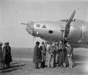 Keywords: Solons inspect new Army Bomber 22357v.jpg photograph en Solons inspect new Army Bomber Washington D C March 10 Members of the House Military Affairs Committee with U S Chief of staff General Mailin Craig inspecting the new 4-Engine Boeing Bomber which arrived at Bolling Field today This ship is first of 13 which will be delivered to the Army Air Corps in the newer future In the photograph left to right can't be seen Rep Andrew Edmiston West Virginia; Rep Charles I Faddis Pa ; Capt C E O'Connor pilot of the ship; Rep Andrew J May Kentucky; Maj Gen Malin H Craig 1937 March 10 1 negative glass 4 x 5 in or smaller accession number LC-DIG-hec-22357 digital file from original negative Call Number LC-H22- D-1011 P P Title from unverified data received with the Harris Ewing Collection on the negative or negative sleeve Date year based on date of related adjacent negatives Gift; Harris Ewing Inc 1955 General information about the Harris Ewing Collection is available at http //hdl loc gov/loc pnp/pp hec Temp note Batch four LOC-image hec 22357 Harris Ewing Rights Advisory No known restrictions on publication <gallery> Solons_inspect_new_army_bomber_22357a tif tif </gallery> PD-Harris-Ewing Washington D C in the 1930s YB-17 Malin Craig Charles I Faddis Andrew J May 96th Bomb Squadron |