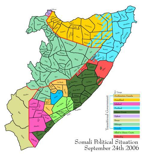 Keywords: Somali land 2006 09 24.png Somali political situation as of September 24 2006 2006-12-24 own assumed Ingoman Maps of Somali Civil War