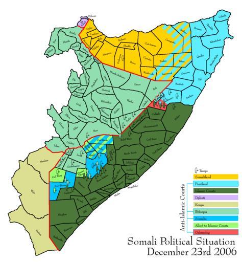 Keywords: Somali land 2006 12 23.png Somali political situation as of December 23 2006 2006-12-24 own assumed Ingoman Maps of Somali Civil War