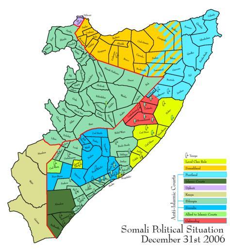 Keywords: Somali land 2006 12 31.png Political Situation in Somalia as of December 31st 2006 2007-01-03 own assumed Ingoman Maps of Somali Civil War