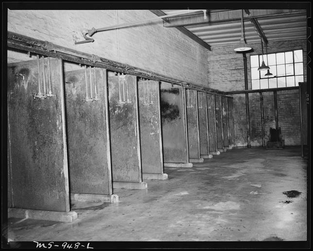 | Keywords: Some of the showers in the bathouse for miners. Tennessee Coal, Iron & R.R. Company, Edgewater Mine, Birmingham... - NARA - 540621.tif Scope and content General notes 540621 Local identifier 245-MS-948L Department of the Interior Solid Fuels Administration For War 04/19/1943 - 06/30/1947 NARA-Author Lee Russell 1903-1986 Photographer 2489414 <br /> Still Picture Records Section Special Media Archives Services Division NWCS-S National Archives at College Park 8601 Adelphi Road College Park MD 20740-6001 1946-07-26 Record group Record Group 245 Records of the Solid Fuels Administration for War 1937 - 1948 Record group ARC 572 Photographs of the Medical Survey of the Bituminous Coal Industry compiled 1946 - 1947 Series ARC 540230 File unit File unit ARC Variant control numbers NAIL Control Number NWDNS-245-MS-948L yes Other versions <gallery> File Some_of_the_showers_in_the_bathouse_for_miners _Tennessee_Coal _Iron_ _R R _Company _Edgewater_Mine _Birmingham _-_NARA_-_540621 tif tif File Some_of_the_showers_in_the_bathouse_for_miners _Tennessee_Coal _Iron_ _R R _Company _Edgewater_Mine _Birmingham _-_NARA_-_540621 jpg jpg </gallery> NARA-cooperation PD-USGov NARA TIF images with categorized JPGs Alabama Coal mining in the United States Mining buildings in the United States Coal Building interiors in Alabama Mining Coal mining in Appalachia x Economy of Alabama Coal Tennessee Coal Iron R R Company Mining Alabama in the 1940s Mining Black and white photographs of Alabama Mining |