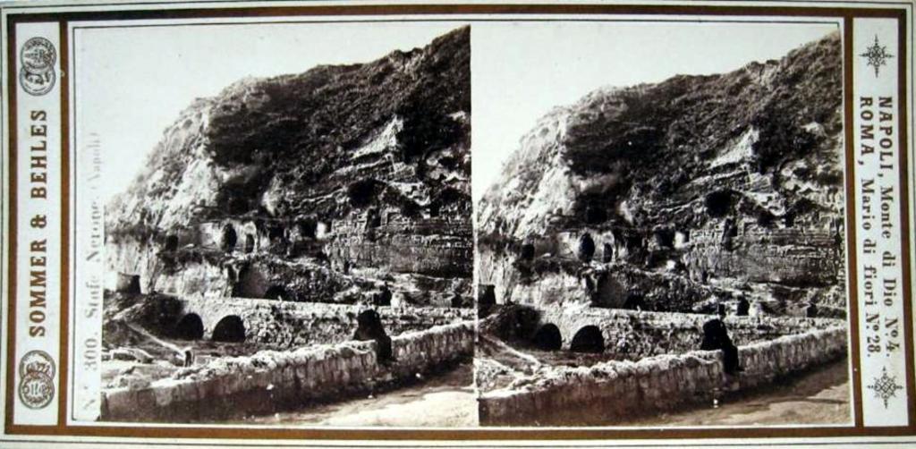 Keywords: Sommer, Giorgio (1834-1914) & Behles, Edmond (1841-1924) - n. 0300 - Stufe Nerone (Napoli).jpg Sommer 1834-1914 Behles 1841-1924 - Stufe <di> Nerone - Napoli Stereofotografia Numero di catalogo 302 La foto mostra le cd Stufe di Nerone o Bagno di Tritoli antica sauna romana scavata direttamente nel monte che si affaccia sul Lago Lucrino; si trova lungo la strada che da Pozzuoli porta a Baia E' situata esattamente sul confine tra i comuni di Pozzuoli e di Bacoli Sommer 1834-1914 Behles 1841-1924 - Nero's stoves - Naples Stereo card Catalogue number 302 own scan < 1907 Giorgio Sommer 1834-1914 Edmond Behles 1841-1924 PD-old Photographs by Edmond Behles 0302 Historical images of Pozzuoli by Giorgio Sommer 0302 Stufe di Nerone Naples 1890s Lucrino 1890s Bacoli 1890s Stereo cards of Naples Stufe