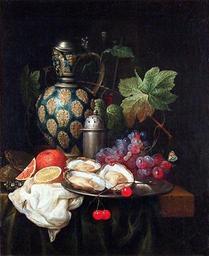 Keywords: Son, Joris van - Stilleben mit Früchten, Austern und Krug.jpg Artwork Creator Joris van Son oil on canvas 58 x 46 5 cm object history credit line http //www sternburg-stiftung de/gemaelde/popup_151 html accession number 1572 http //www sternburg-stiftung de/gemaelde/bilder/1572 jpg PD-old-100 Paintings by Joris van Son Stilleben mit Früchten Austern und Krug Jugs in art Oil still life paintings 17th-century oil on canvas paintings Paintings with signatures 17th-century still life paintings of fruits Still life paintings with oysters Paintings of grapes Paintings of cherries 17th-century paintings location missing Leaves in art Uploads by Mattes from external sources 17th-century paintings not categorised by year |