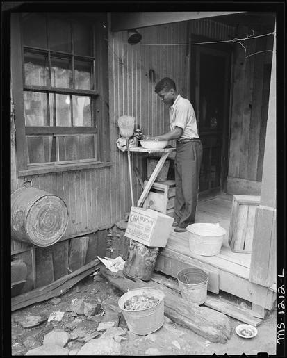 | Keywords: Son of Lonnie Davis, miner, washing hands. Water is carried from outside tap. Kingston Pocahontas Coal Company... - NARA - 540731.tif Scope and content General notes 540731 Local identifier 245-MS-1212L Department of the Interior Solid Fuels Administration For War 04/19/1943 - 06/30/1947 NARA-Author Lee Russell 1903-1986 Photographer 2489414 <br /> Still Picture Records Section Special Media Archives Services Division NWCS-S National Archives at College Park 8601 Adelphi Road College Park MD 20740-6001 1946-08-10 Record group Record Group 245 Records of the Solid Fuels Administration for War 1937 - 1948 Record group ARC 572 Photographs of the Medical Survey of the Bituminous Coal Industry compiled 1946 - 1947 Series ARC 540230 File unit File unit ARC Variant control numbers NAIL Control Number NWDNS-245-MS-1212L yes Other versions <gallery> File Son_of_Lonnie_Davis _miner _washing_hands _Water_is_carried_from_outside_tap _Kingston_Pocahontas_Coal_Company _-_NARA_-_540731 tif tif File Son_of_Lonnie_Davis _miner _washing_hands _Water_is_carried_from_outside_tap _Kingston_Pocahontas_Coal_Company _-_NARA_-_540731 jpg jpg </gallery> NARA-cooperation PD-USGov Coal mining in the United States NARA TIF images with categorized JPGs |