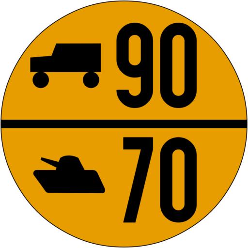 Keywords: Sonderschild für Fahrbahnbreiten (einspuriger Verkehr) - STANAG 2010, 1961.svg de Sonderschild für Fahrbahnbreiten b < 5 50 m einspuriger Verkehr Das damalige Bundesministerium für Verteidigung führte 1961 Beschilderungsrichtlinien nach STANAG 2010 ein welche die militärischen Tragfähigkeit von befahrbaren Bauwerken regelte Das Schild sollte einen Durchmesser von ‰¥ 51 cm haben Für den Gelbton wurde das RAL-Farbtonregister 840 R gewählt Der dort verzeichnete Ton ist in der Abbildung wiedergegeben Das Vorbild für dieses Schild ist in einem žTelekurs für Autofahrer des Bayerischen Rundfunks von 1968/1969 zu sehen und wurde von mir entzerrt und über einem Standfoto nachgezeichnet Das Vorbild für dieses Schild ist in einem žTelekurs für Autofahrer des Bayerischen Rundfunks von 1968/1969 zu sehen und wurde von Mediatus entzerrt und über einem Standfoto interpretiert und nachgezeichnet Mediatus 2013-10-26 other fields + Signs User Mediatus/no-new-version Cc-zero PD-Vz historisch SVG road signs in Germany Diagrams of historic road signs of Germany 1961 set Diagrams of military road signs of Germany Orange signs Military Load Classification Markings STANAG 2010 |