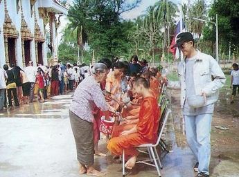 Keywords: Songkran in Wat Kungthapao.jpg Photo by User Tevaprapas 2000 ประ พณีสรงน้ำพระภิกษุ วัดคุ้งตะ ภา ตำบลคุ้งตะ ภา อำ ภอ มือง จังหวัดอุตรดิตถ์ the tradition takes a bath the monk in the Songkran Thailand Uttaradit 2000 Own work own 2000 80px 100px Songkran in Wat Khung Taphao |