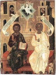 Keywords: Soprestolie (Venice, 16 c.).jpeg Венецианский XVI в Икона из це кви Гео гия в Венеции http //www cirota ru/forum/view php subj 41878 order asc pg 1 16 век anonymous PD-Art Trinity icon co-enthronment Files uploaded by Shakko from various sources