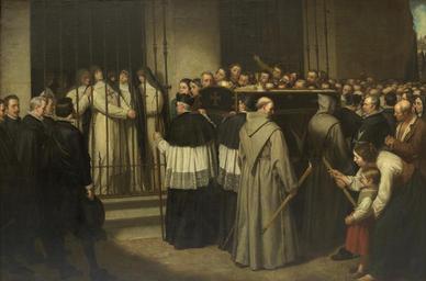 Keywords: Sor Marcela de San Félix viendo el entierro de su padre, Lope de Vega (Museo del Prado).jpg Sor Marcela de San Félix 1605-1687 que fue una escritora y poetisa Española viendo pasar desde su convento el entierro de su padre el célebre dramaturgo de Lope de Vega que murió en Madrid el día 27 de agosto de 1635 1862 Oil on canvas cm 307 200 Institution Museo del Prado https //www museodelprado es/coleccion/galeria-on-line/galeria-on-line/obra/sor-marcela-de-san-felix-viendo-el-entierro-de-su-padre-lope-de-vega/ PD-old-100 other versions Uploaded with UploadWizard Marcela de San Félix Félix Lope de Vega in art Ignacio Suárez Llanos Spanish 19th-century paintings in the Museo del Prado 1862 paintings Paintings by Ignacio Suárez Llanos |