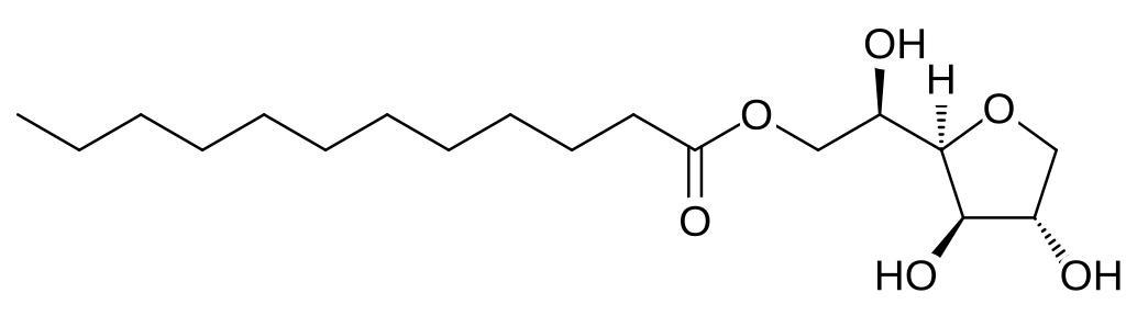 Keywords: Sorbitan monolaurate.svg Chemical structure of sorbitan monolaurate sorbitan laurate Span 20 Own 15 11 17 July 2014 UTC Ed Edgar181 Food additives Fatty acid esters