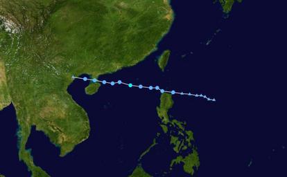 Keywords: Soudelor 2009 track.png Track map of Tropical Storm Soudelor Gorio of the 2009 Pacific typhoon season The points show the location of the storm at 6-hour intervals The colour represents the storm's maximum sustained wind speeds as classified in the Saffir-Simpson Hurricane Scale see below and the shape of the data points represent the nature of the storm according to the legend below User Nilfanion/Tc/T Created by Cyclonebiskit using Wikipedia WikiProject Tropical cyclones/Tracks The background image is from NASA Tracking data switch source from the National Hurricane Center <sup>http //www nhc noaa gov/pastall shtml</sup> from the Central Pacific Hurricane Center <sup>http //www prh noaa gov/cphc/summaries/</sup> from the Joint Typhoon Warning Center <sup>https //metocph nmci navy mil/jtwc/best_tracks/</sup> from the Japan Meteorological Agency <sup>http //www jma go jp/jma/jma-eng/jma-center/rsmc-hp-pub-eg/besttrack html</sup> from the National Hurricane Center <sup>http //www nhc noaa gov/pastall shtml and the Central Pacific Hurricane Center http //www prh noaa gov/cphc/summaries/</sup> from the Central Pacific Hurricane Center <sup>http //www prh noaa gov/cphc/summaries/ and the Joint Typhoon Warning Center https //metocph nmci navy mil/jtwc/best_tracks/</sup> from the w National Hurricane Center <sup>http //www nhc noaa gov/pastall shtml</sup> or the Joint Typhoon Warning Center <sup>https //metocph nmci navy mil/jtwc/best_tracks/</sup> July 8-11 2009 Cyclonebiskit cc-by-sa-3 0 GFDL Tropical Storm Soudelor 2009 2009 Pacific typhoon season track maps