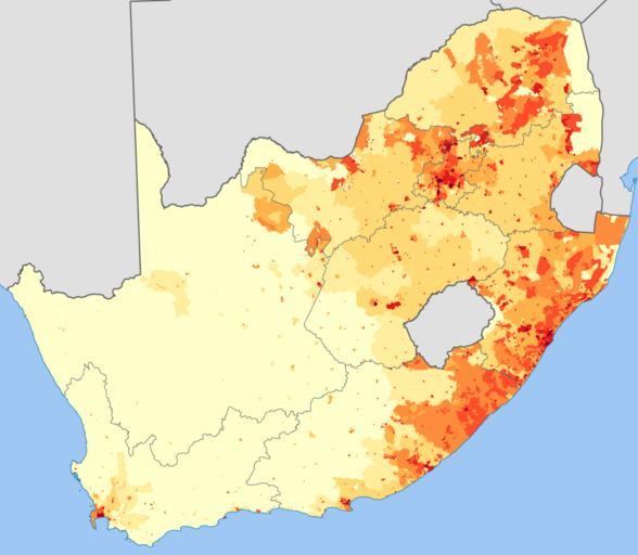 Keywords: South Africa 2001 Black African population density map.svg ffffcc <1 person/km² ffeda0 1 “3 people/km² fed976 3 “10 people/km² feb24c 10 “30 people/km² fd8d3c 30 “100 people/km² fc4e2a 100 “300 people/km² e31a1c 300 “1000 people/km² bc0026 1000 “3000 people/km² 800026 >3000 people/km² Projection is Albers Equal-Area Conic with standard parallels at 25 5° S and 31 5° S and origin at 28 5° S 25 5° E Statistics South Africa's Census 2001 is the source of the basic population data The map results from my own processing of the data Htonl 2010-02-20 Superseded demographic maps of South Africa Maps with Albers projection The following license applies to the population data on which the map is based http //www statssa gov za/copyrightdisclaimer asp the user acknowledges Stats SA as the source of the basic data wherever they process apply utilise publish or distribute the data and also that they specify that the relevant application and analysis where applicable result from their own processing of the data The following tag applies to the map itself |