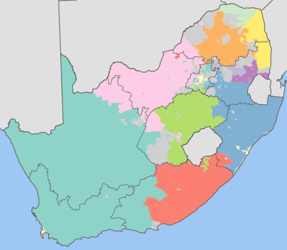 Keywords: South Africa 2001 dominant language map.svg 8dd3c7 Afrikaans ffffb3 English bebada isiNdebele fb8072 isiXhosa 80b1d3 isiZulu fdb462 Sesotho sa Leboa b3de69 Sesotho fccde5 Setswana bc80bd siSwati ccebc5 Tshivenda ffed6f Xitsonga d0d0d0 No language dominant Projection is Albers Equal-Area Conic with standard parallels at 25 5° S and 31 5° S and origin at 28 5° S 25 5° E Statistics South Africa's Census 2001 is the source of the basic population data The map results from my own processing of the data Htonl 2010-02-07 Htonl The following license applies to the population data on which the map is based http //www statssa gov za/copyrightdisclaimer asp the user acknowledges Stats SA as the source of the basic data wherever they process apply utilise publish or distribute the data and also that they specify that the relevant application and analysis where applicable result from their own processing of the data The following tag applies to the map itself Superseded linguistic maps of South Africa Maps with Albers projection |