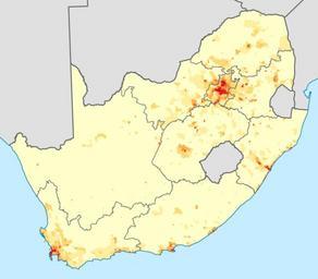 Keywords: South Africa 2011 White population density map.svg ffffcc <1 person/km² ffeda0 1 “3 people/km² fed976 3 “10 people/km² feb24c 10 “30 people/km² fd8d3c 30 “100 people/km² fc4e2a 100 “300 people/km² e31a1c 300 “1000 people/km² bc0026 1000 “3000 people/km² 800026 >3000 people/km² Projection is Albers Equal-Area Conic with standard parallels at 25 5° S and 31 5° S and origin at 28 5° S 25 5° E Statistics South Africa's Census 2011 is the source of the basic population data The map results from my own processing of the data For ward boundaries see File South Africa electoral wards 2011 blank svg Htonl 2013-04-16 Demographic maps of South Africa White people Maps with Albers projection Maps by Htonl The following license applies to the population data on which the map is based http //www statssa gov za/copyrightdisclaimer asp the user acknowledges Stats SA as the source of the basic data wherever they process apply utilise publish or distribute the data and also that they specify that the relevant application and analysis where applicable result from their own processing of the data The following applies to the map itself |