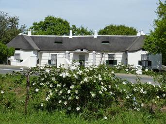 Keywords: south africa garden route stellenbosch historically home building reed thatched roof cape dutch wild rose rose