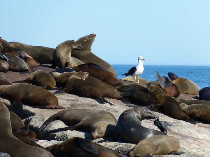 Keywords: south africa robbe seals mammal hout bay cape peninsula nature ocean pelzrobbe cape cape town seagull landscape sea indian ocean