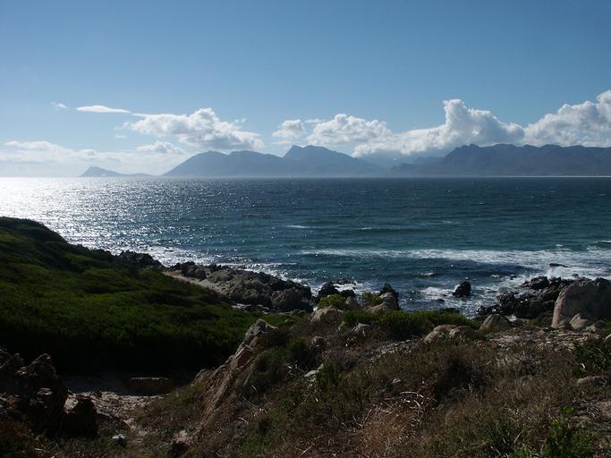 Keywords: south africa western cape hawston coast sea bay gulf of finland sea indian ocean mountains landscape coastal landscape nature paradise water clouds garden route back light high contrast