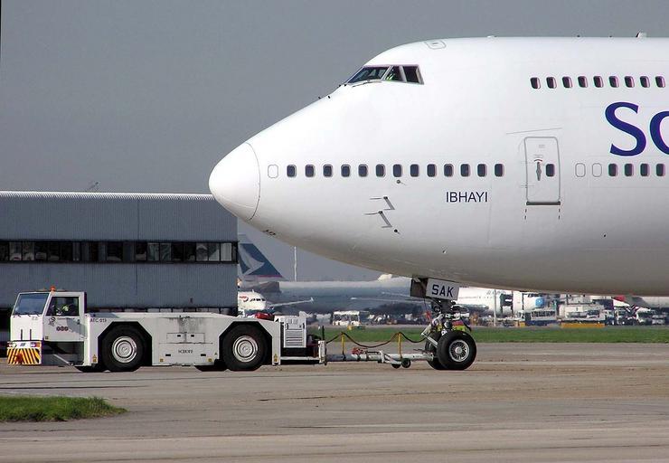 | Keywords: South.african.airways.b747-400.zs-sak.arp.jpg South African Airways Boeing 747-400 ZS-SAK on tow at London Heathrow Airport England Photographed by Adrian Pingstone in April 2005 and released to the public domain own 2005-04 Adrian Pingstone Arpingstone Airport vehicles in the United Kingdom Taken with Olympus C-750UZ ZS-SAK aircraft Boeing 747 undercarriages Pushback tractors South African Airways aircraft at London Heathrow Airport | ||||