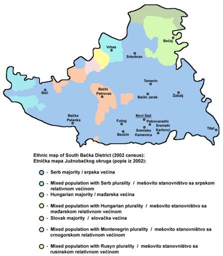 Keywords: South backa ethnic2002.png en Ethnic map of South Bačka District - 2002 census data by settlements Етничка мапа Јужнобачког ок уга - попис из 2002 подаци по насељима ---- ;References Popis stanovništva domaćinstava i stanova u 2002 Stanovništvo nacionalna ili etnička pripadnost - Podaci po naseljima knjiga 1 Republika Srbija - Republički zavod za statistiku Beograd februar 2003 Slobodan Radovanović Geografski atlas Magic Map Smederevska Palanka 2001 Školski geografski atlas Intersistem Kartografija Beograd 2004 Denis Šehić - Demir Šehić Geografski atlas Srbije Beograd 2007 File Census 2002 Serbia ethnic map by localities png own PANONIAN 2009 Lõuna-Bačka rahvused png no legend PANONIAN South Bačka District Maps of districts of Vojvodina Demographic maps of Vojvodina Maps of the Serbs in Serbia Maps of the Hungarians Maps of the Slovaks Maps of the Montenegrins Maps of the Rusyns Maps in Serbian |