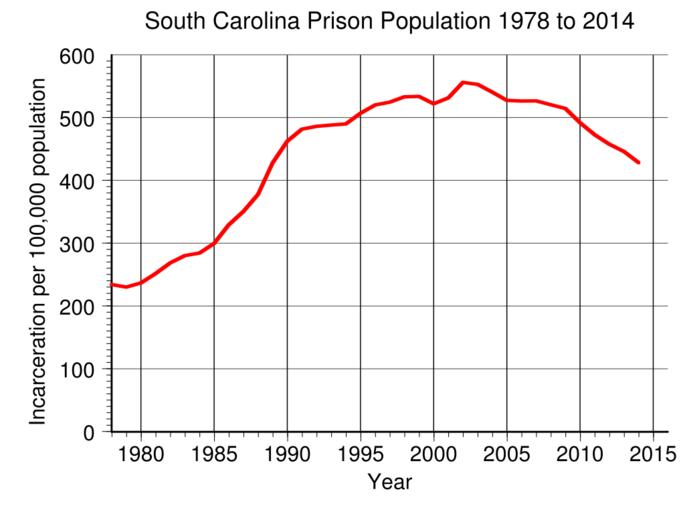 MAKE A MEME View Large Image South Carolina Prison Population.svg en South Carolina prison incarceration rate per 100 000 population from 1978 to 2014 Data from http //www bjs gov/index cfm ty nps BJS 2016-05-11 own Delphi234 other versions current annually Generated ...