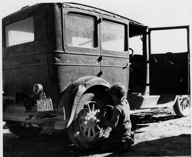 Keywords: South of Eloy, Pinal County, Arizona. Ten-year-old migratory Mexican cotton picker. He was born in T . . . - NARA - 522026.jpg Scope and content Full caption reads as follows South of Eloy Pinal County Arizona Ten-year-old migratory Mexican cotton picker He was born in Tucson He is fixing the family car He does not go to school now but when he did go was in grade 1-A Says in Spanish I do not go to school because my father wishes my aid in picking cotton On preceding day he picked 25 pounds of Pima cotton General notes 522026 Local identifier 83-G-41821 Department of Agriculture Bureau of Agricultural Economics Division of Economic Information ca 1922 - ca 1953 NARA-Author Lange Dorothea 1895-1965 Photographer 1372774 <br /> Still Picture Records Section Special Media Archives Services Division NWCS-S National Archives at College Park 8601 Adelphi Road College Park MD 20740-6001 11/1940 Record group Record Group 83 Records of the Bureau of Agricultural Economics 1876 - 1959 Record group ARC 412 Photographic Prints Documenting Programs and Activities of the Bureau of Agricultural Economics and Predecessor Agencies compiled ca 1922 - ca 1947 documenting the period ca 1911 - ca 1947 Series ARC 521048 File unit File unit ARC Variant control numbers NAIL Control Number NWDNS-83-G-41821 Other versions <gallery> File South_of_Eloy _Pinal_County _Arizona _Ten-year-old_migratory_Mexican_cotton_picker _He_was_born_in_T_ _ _ _-_NARA_-_522026 tif tif File South_of_Eloy _Pinal_County _Arizona _Ten-year-old_migratory_Mexican_cotton_picker _He_was_born_in_T_ _ _ _-_NARA_-_522026 jpg jpg </gallery> NARA-cooperation PD-USGov Dorothea Lange Eloy Arizona |