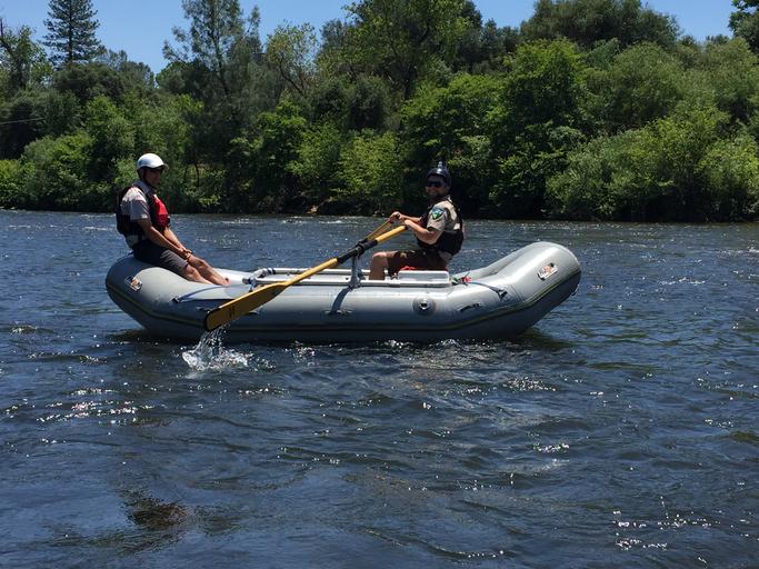 | Keywords: river nature outdoor travel boat boating rafting whitewater rafting whitewaterrafting kay kayaking beauty scenic california recreation water sun summer blmcareers america's great outdoors americasgreatoutdoors american river americanriver history mountains vehicle The Gold Rush River, the South Fork of the American River, today still delivers its own special currency as the most popular (and most populated) whitewater run in California. Even before James Marshall's fortuitous 1848 find in John Sutter's mill race, the Rio de los Americanos flaunted its reputation as a wild and capricious mountain stream. Today, tempered by upstream dams, the South Fork still lurches and bucks through cataracts of boulders, drops and chutes, on its headstrong plunge through Meatgrinder, Fowlers Rock, and Satan's Cesspool, then delivers a rough goodbye at Hospital Bar. Along with these heart-stopping rapids, you'll no doubt come to shore long enough to do some discovering of your own at the Marshall Gold Discovery State Park. The 21 mile river run can be made in a full day or a more relaxing two day trip. Picnicking is available at the Dave Moore Nature Area which is accessible by automobile from Highway 49 or by boat on the river. Take US 50 to the town of Placerville, then follow Highway 49 to Highway 193 to the Chili Bar Reservoir. Highway 49 also runs through Coloma for river access at the Henningsen-Lotus Park. Put-in options include: Chili Bar, Henningsen-Lotus Park, Hwy. 49 Bridge West, Marshall Gold Discovery Park, Camp Lotus. Photo by Maria Thi Mai, BLM. The Gold Rush River, the South Fork of the American River, today still delivers its own special currency as the most popular (and most populated) whitewater run in California. Even before James Marshall's fortuitous 1848 find in John Sutter's mill race, the Rio de los Americanos flaunted its reputation as a wild and capricious mountain stream. Today, tempered by upstream dams, the South Fork still lurches and bucks through cataracts of boulders, drops and chutes, on its headstrong plunge through Meatgrinder, Fowlers Rock, and Satan's Cesspool, then delivers a rough goodbye at Hospital Bar. Along with these heart-stopping rapids, you'll no doubt come to shore long enough to do some discovering of your own at the Marshall Gold Discovery State Park. The 21 mile river run can be made in a full day or a more relaxing two day trip. Picnicking is available at the Dave Moore Nature Area which is accessible by automobile from Highway 49 or by boat on the river. Take US 50 to the town of Placerville, then follow Highway 49 to Highway 193 to the Chili Bar Reservoir. Highway 49 also runs through Coloma for river access at the Henningsen-Lotus Park. Put-in options include: Chili Bar, Henningsen-Lotus Park, Hwy. 49 Bridge West, Marshall Gold Discovery Park, Camp Lotus. Photo by Maria Thi Mai, BLM. |