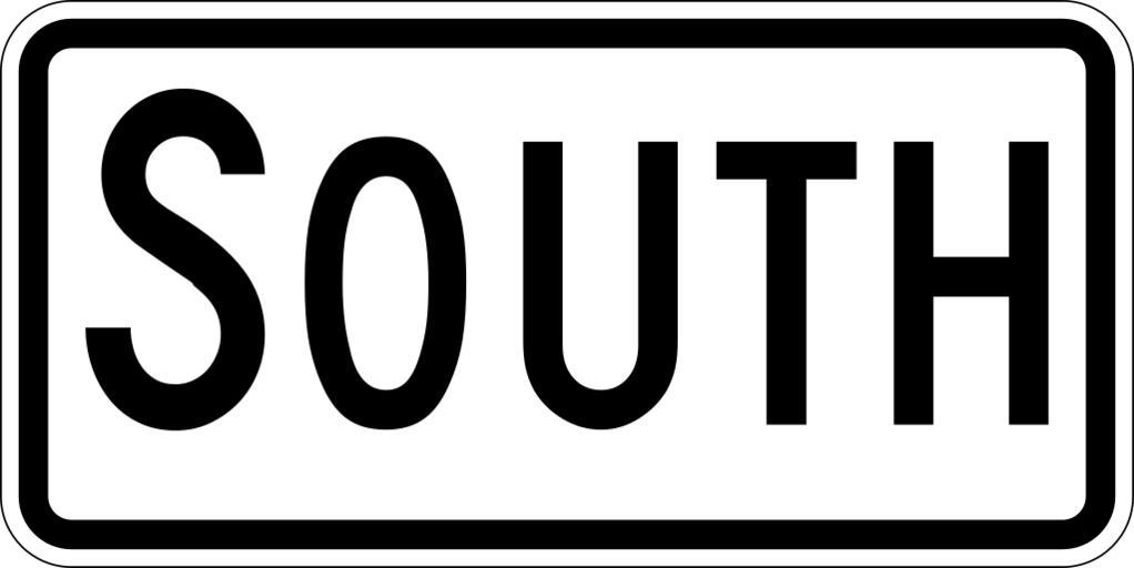 Keywords: South plate.svg 600 mm by 300 mm 24 in by 12 in south plate made to the specifications of the http //mutcd fhwa dot gov/SHSm/Guide pdf 2004 edition of Standard Highway Signs sign M3-3 Uses the http //www triskele com/fonts/index html Roadgeek 2005 fonts United States law does not permit the copyrighting of typeface designs and the fonts are meant to be copies of a U S Government-produced work anyway The outside border has a width of 1 1 mm and a color of black so it shows up; in reality signs have no outside border own Ltljltlj User Ltljltlj/Template M3-3 - Cardinal Direction Auxiliary Diagrams of black and white road signs |