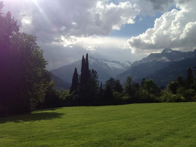 Keywords: south tyrol meran meadow nature sky mountains clouds sun april weather wide view rush pasture alpine