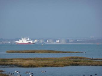 Keywords: Southampton Water from Jack Maynard Road 2.jpg Salt marsh with the oil terminal of Hamble-le-Rice in the background as viewed from Jack Maynard Road near the Calshot Spit in Hampshire England Commonist no icon Own 2011-03-04 14 01 58 User CT Cooper/Author 50 48 48 41 N 1 18 41 1 W region GB_heading NNW ImageNote 1 426 1064 634 311 3072 2304 2 A ferry of Red Funnel travelling from East Cowes to Southampton ImageNoteEnd 1 Images by User CT Cooper Taken with Panasonic Lumix DMC-TZ3 Hamble Oil Terminal Salt marshes |
