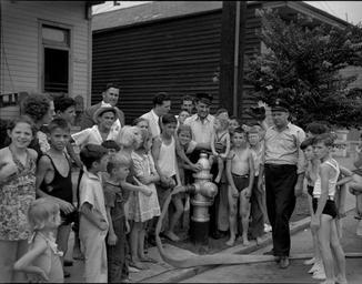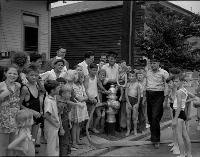 Keywords: SouthBroadSummerShowers1940HydrantCrowd.jpg New Orleans 1940 For the fifth consecutive year the WPA recreation project begins its summer showers program Boys and girls of New Orleans will cool off at seventeen locations in the city The formal opening of the program shown here was held at the fire station at 231 South Broad Street Lieutenant Bat Otillio; Pipeman Richard Cochran Engine House 26 Hook Ladder 9; and Barbara Lee Grager age 2 Exterior The Summer Showers Program provided sprays of water at fire stations for children to play and cool off in Works Progress Administration photo via http //www nutrias org/~nopl/photos/wpa/wpa36 htm 1940-07-01 Uncredited WPA photographer PD-USGov 1940 in New Orleans Broad Avenue New Orleans Children of the United States Fashion in 1940 Mid City New Orleans 1940s swimwear Fire hydrants in New Orleans Firefighters in Louisiana Water curtains |