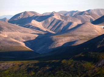 Keywords: Tonight I tried to climb the northwest mountain again. The ascent past yesterday’s endpoint was steep and a little frightening. All the rocks were sharp like knives sticking out of the earth, and there weren’t many stable places to step. Occasionally I would take a step up and then slide back down two or three feet. Eventually the steep grade required me to climb like a Dall’s sheep, making zig-zag switchbacks all the way to the top. Near the peak, two birds flew right past me, zoomed to the top of the mountain. Lucky birds, I wish I could fly up to the top! (Nakolik - Waypoint 6) noatak national preserve virtual visit