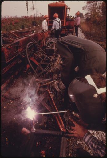 | Keywords: SOUTHERN RAILWAY TRACK REPAIR CREW REPAIR EQUIPMENT USED IN LAYING QUARTER MILE LONG SECTIONS OF WELDED TRACK ON THE... - NARA - 556863.tif Scope and content General notes 556863 Local identifier 412-DA-14411 Environmental Protection Agency 12/02/1970 - NARA-Author Pickerell Jim 1936- Photographer 4588217 <br /> Culpeper Culpeper Virginia United States North and Central America inhabited place 3396269 38 467 -77 983 <br /> Still Picture Records Section Special Media Archives Services Division NWCS-S National Archives at College Park 8601 Adelphi Road College Park MD 20740-6001 10/1974 Record group Record Group 412 Records of the Environmental Protection Agency 1944 - 2006 Record group ARC 708 DOCUMERICA The Environmental Protection Agency's Program to Photographically Document Subjects of Environmental Concern compiled 1972 - 1977 Series ARC 542493 File unit File unit ARC Variant control numbers Agency-Assigned Identifier 241/11/014411<br /> NAIL Control Number NWDNS-412-DA-14411 yes Other versions <gallery> File SOUTHERN_RAILWAY_TRACK_REPAIR_CREW_REPAIR_EQUIPMENT_USED_IN_LAYING_QUARTER_MILE_LONG_SECTIONS_OF_WELDED_TRACK_ON_THE _-_NARA_-_556863 tif tif File SOUTHERN_RAILWAY_TRACK_REPAIR_CREW_REPAIR_EQUIPMENT_USED_IN_LAYING_QUARTER_MILE_LONG_SECTIONS_OF_WELDED_TRACK_ON_THE _-_NARA_-_556863 jpg jpg </gallery> NARA-cooperation PD-USGov Welders Southern Railway US construction NARA TIF images with categorized JPGs |