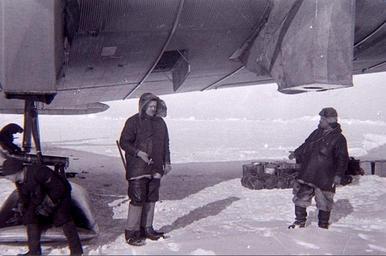 | Keywords: Soviet airplane at the North Pole in 1937.jpg ru Выг узка г узов экспедиции Севе ный полюс-1 на д ейфующую льдину в 1937 году 1937 http //www atexpo ru/about/project/north/08/ author other versions Custom license marker 2014 10 28 PD-Old Uploaded with UploadWizard Expedition North Pole-1 Seal clothing Fur trousers Aviators from the Soviet Union Fur fashion in 1937 | ||||