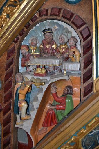 Keywords: Sowno (powiat stargardzki) ambona (1).jpg pl Kościół św Marii Magdaleny w Sownie powiat stargardzki Ambona Scena z przypowieści o bogaczu i Łazarzu Uczta u bogacza own Kapitel 2011 Cc-zero Mary Magdalene church in Sowno