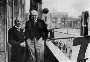 Keywords: Soyeshima und Baillet-Latour in Berlin 1936.png de IOC-Mitglied Soyeshima und IOC-Präsident Baillet-Latour vor dem Hotel Adlon nach der Entscheidung für Tokio als Veranstalter der Olympischen Sommerspiele 1940 auf der IOC-Session in Berlin am 1 August 1936 The Organizing Committee of the XIIth Olympiad Report of the Organizing Committee on its Work for the XIIth Olympic Games of 1940 in Tokyo until the Relinquishment Tokio 1940 p 7 anonymous 1936-08-01 PD-Japan-oldphoto 1940 Summer Olympics |